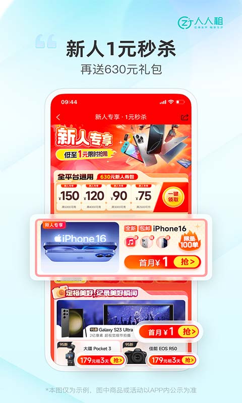 人人租是国内领先的一站式循环租用服务平台,平台聚焦“租-用-还-租”的循环租用模式,构建多场景循环租用生态,提供平台担保、敢租敢赔等服务,致力于为用户提供更轻松的生活、工作方式。平台主营手机、电脑、相机、平板、耳机、智能手表、游戏机、美容个护、大健康、家居家电、电动车、乐器等设备租用,芝麻分≥600即有机会押金全免。